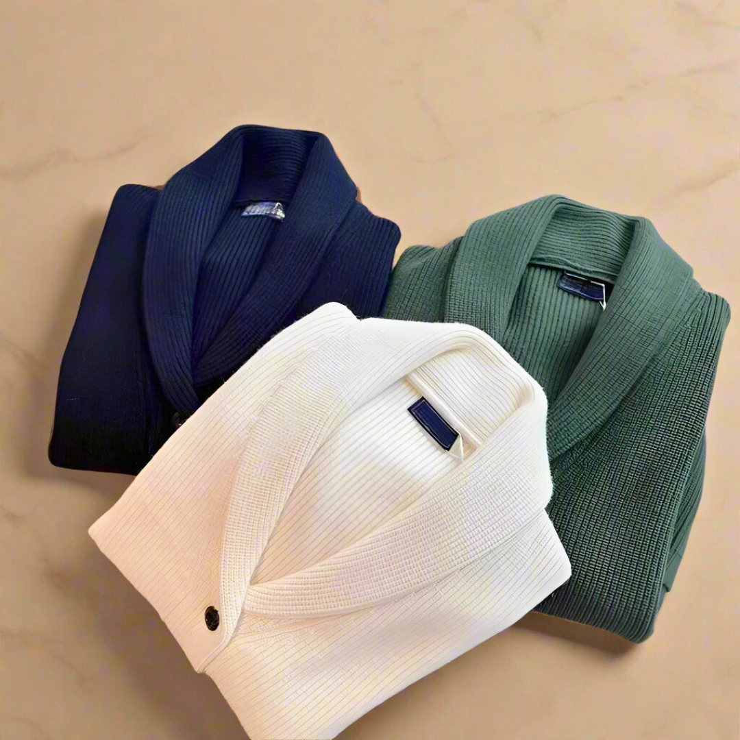 Giorgio Luciano redefines the classic cardigan with a refined, striped design that seamlessly blends tradition with modern sophistication.
